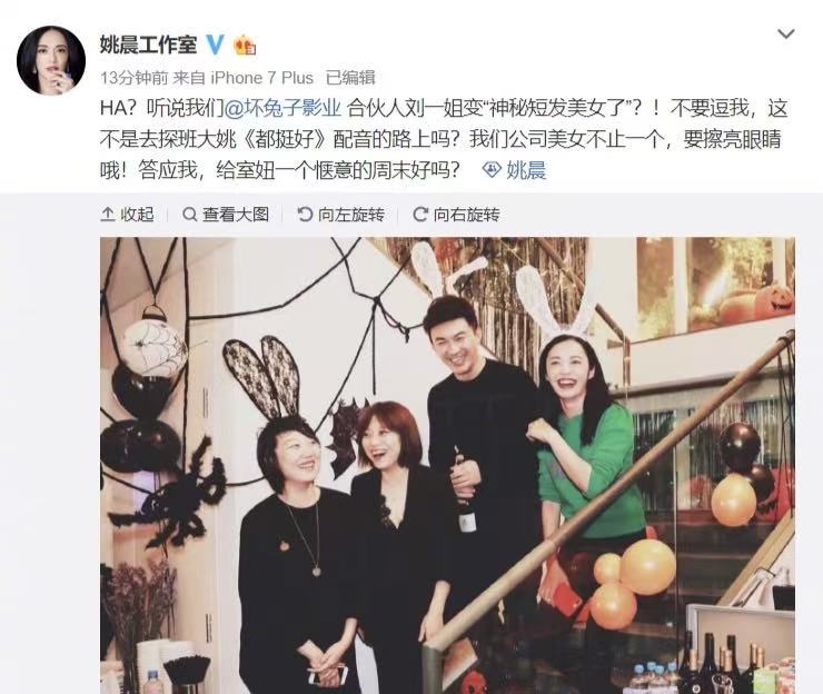不过姚晨这次却力挺曹郁,专门发了微博回应,称和曹郁在一起的是工作室的合伙人。姚晨在2016年生了女儿,也在2016年和曹郁以及姚晨的闺蜜一起合开了坏兔子影业。2014年曹郁被拍到和姚晨闺蜜同进同出,2018年再次被拍到。