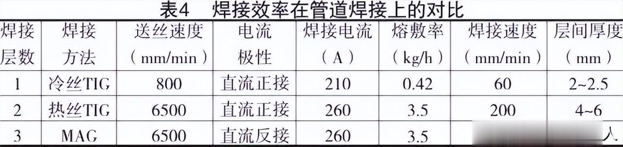 高效热丝TIG可达到TIG焊焊接质量、MAG 焊接速度,但是MAG焊焊接过程中存在飞溅大、弧光强、气孔倾向大、线能量大、打磨量大等缺点,虽然,其熔敷效率高,但在高质量要求下明显不如TIG焊稳定可靠,综合效率高效热丝TIG焊等同于或略大于MAG焊;