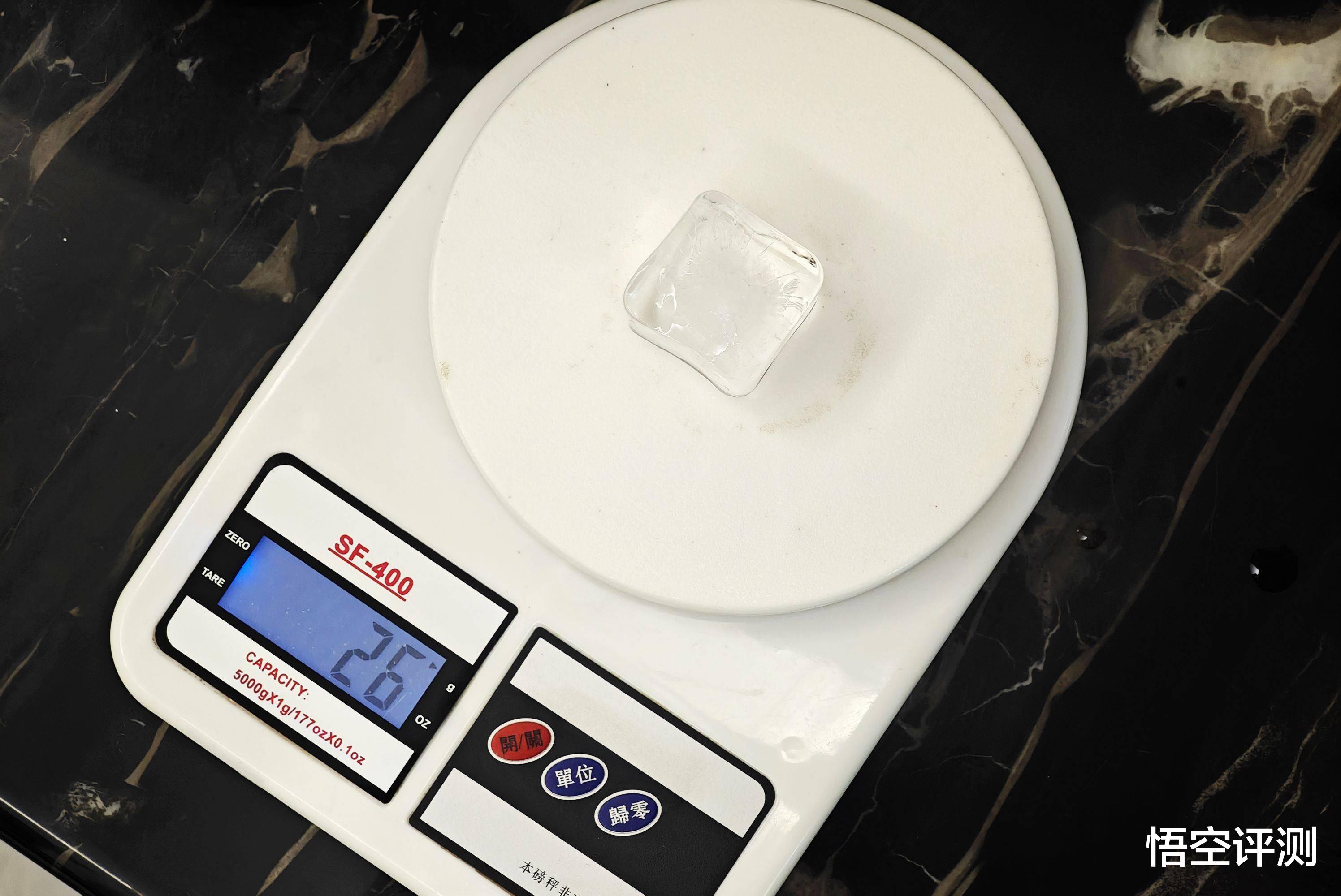 经过了12个小时,冰块的重量依然有26g!
