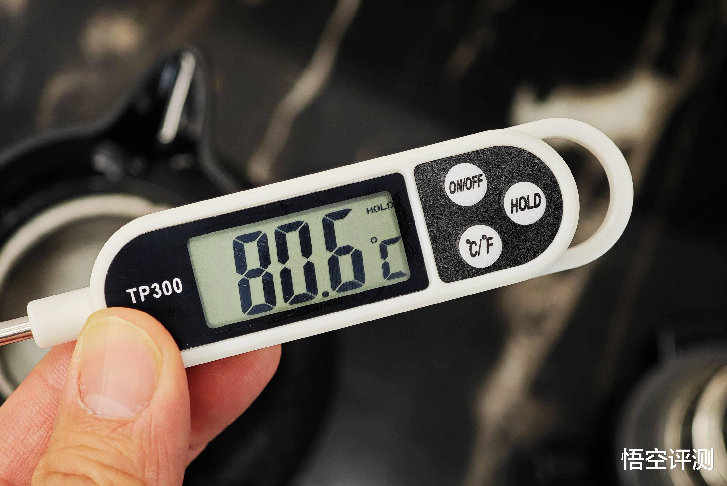 实际测试,沸水放入壶中,显示的温度大概为98摄氏度,可以说非常精准了(参考前文,水温温度计测试的水温约为98.6摄氏度)!
