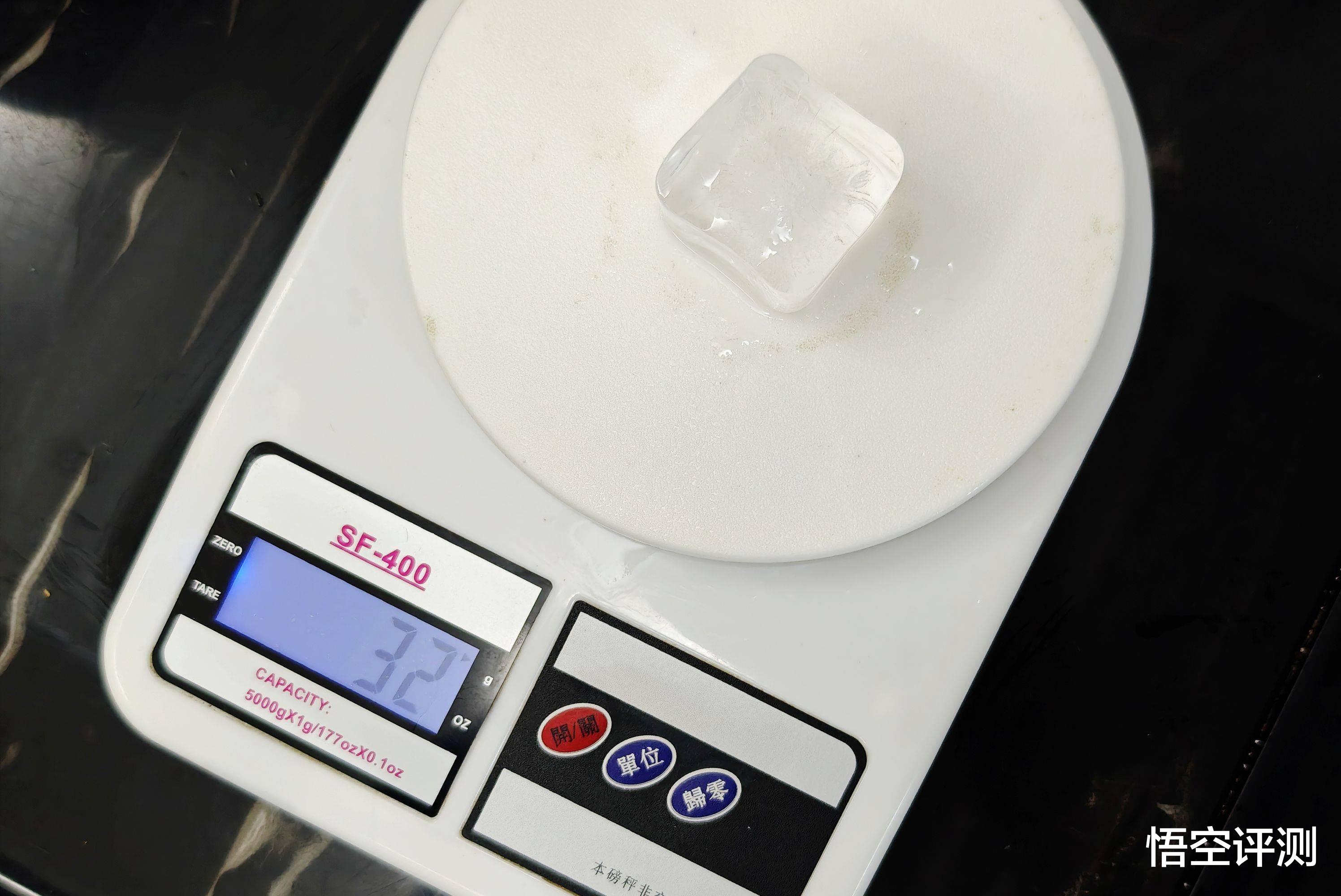 经过了6小时,冰块的重量,依然可以达到32g!