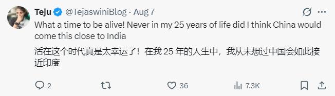 还有印度人表示,“这场反转像韩剧一样精彩”,并认为“活在这个时代真是太幸运了,在我25年的人生中,我从未想过中国会如此接近印度。”
