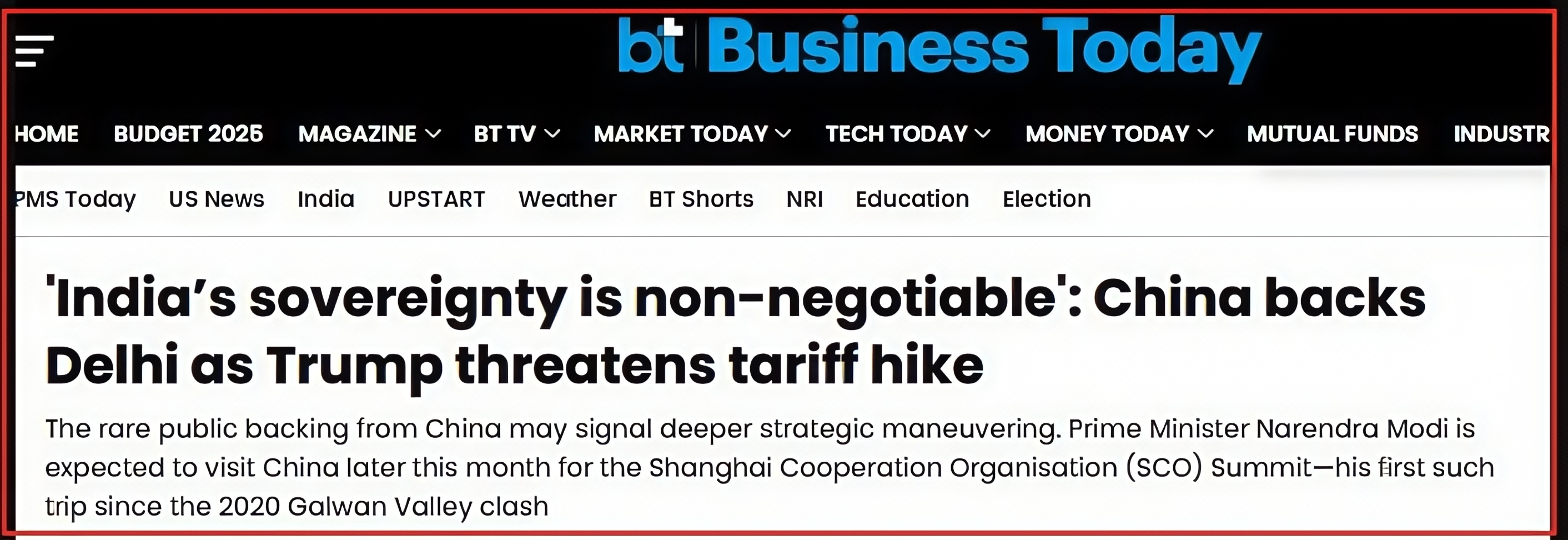 《今日商业》发文报道中国支持印度主权