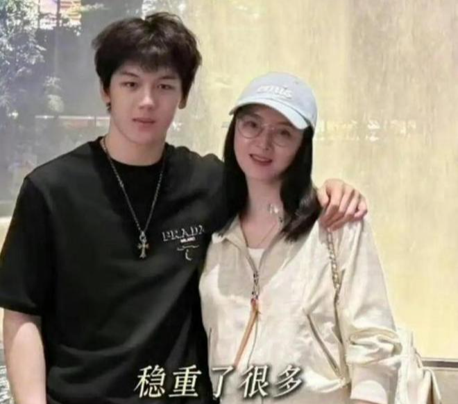 和王艳同框的画面,母子俩站在一起像姐弟,温馨又养眼。