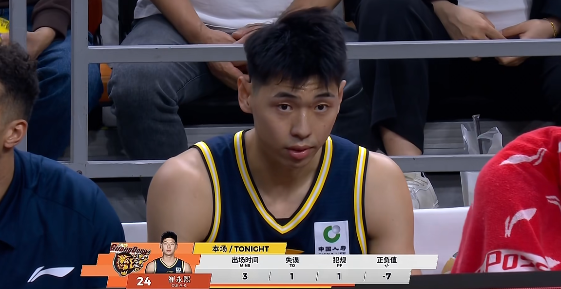 末节决战,面对一个屁的分差,杜导启用张皓嘉+崔永熙的双前锋组合,萨姆纳一打五开局强造2+1,再连线焦泊乔篮下强攻制造2罚拿下5分,7分39秒,崔永熙翻身跳投,终于拿到加盟宏远的第一分,而这也是广东本土球员拿到的第8分。