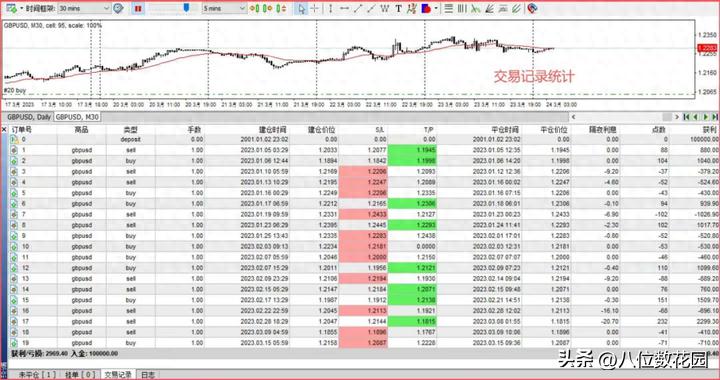 其中成功8次,失败11次,盈亏比设定为2:1,全部开1手,账户为10万美元的模拟账户,最终盈利2969美元。
