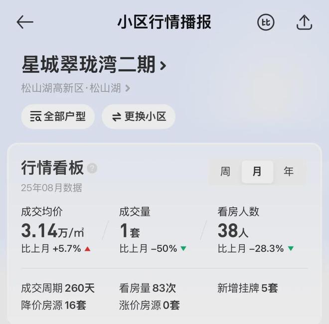 星城翠珑湾二期成交均价约3.14万/平,环比上涨约5.7%。