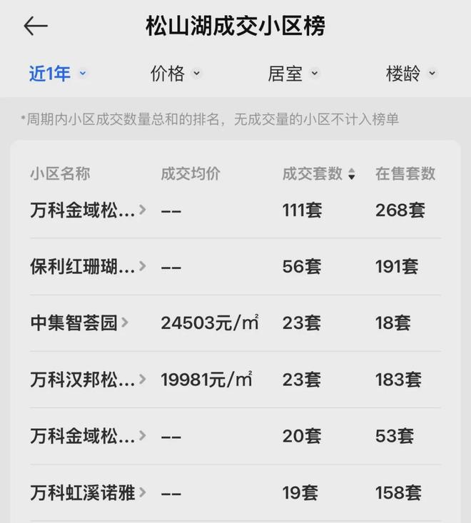 如成交最多的松山湖上车神盘万科金域松湖,在过去一年一期成交了111套,二期成交了20套。