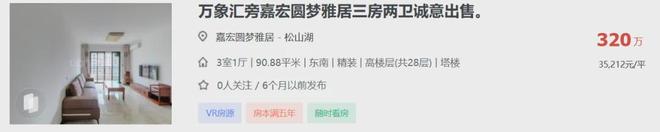 嘉宏松湖里的鱼成交均价约3.46万/平,挂牌价去到了3.9万/平。