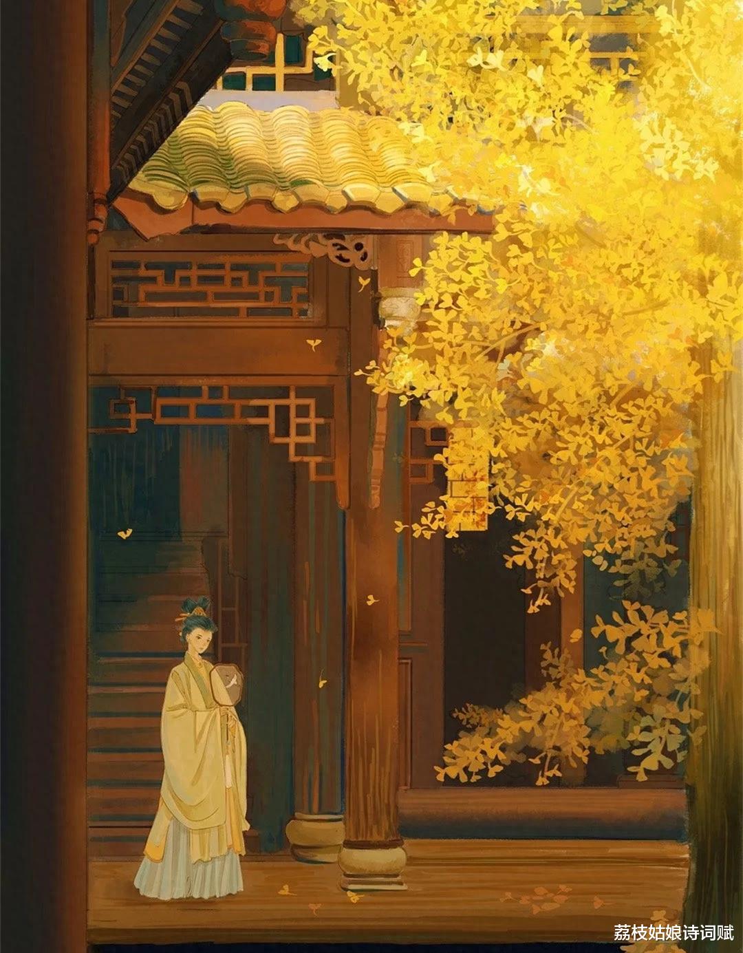 我独自守着一盏即将燃尽的残灯,天气突然变凉,秋天的气息充塞了整个房间。雨水透过罗帷和银屏,一滴一滴地落在梧桐叶上,发出凄凉的声响。