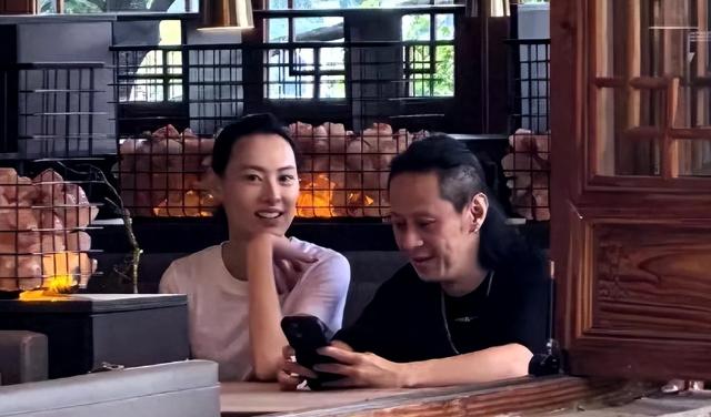 在梁洛施的旁边还有一个男人,身穿低调的黑色T恤,状态也是肉眼可见地好。