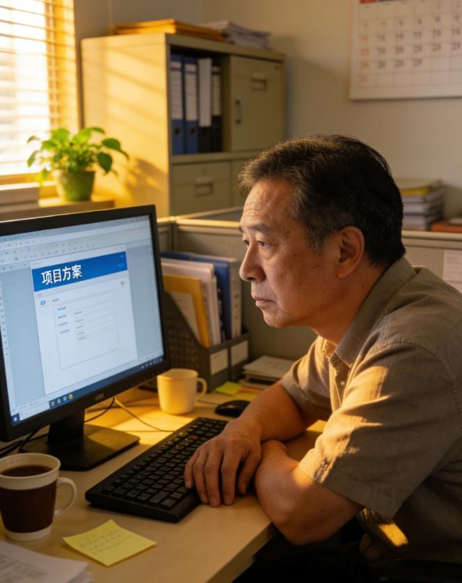 散会后,老张一个人坐在工位上,盯着电脑屏幕发呆。屏幕上是他熬了三个通宵做出来的方案,每一个数据都反复核实过,每一个细节都推敲了无数遍。可这些,在刘明眼里,什么都不是。