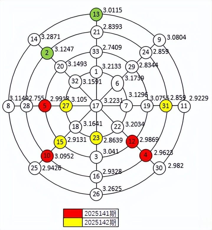 二、2025142期红球与2025141期红球在幻圆图上的对应关系