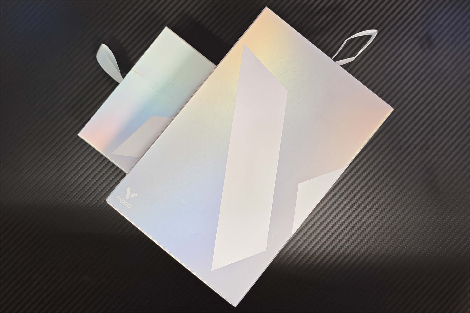 雷柏 VT1 二代包装采用炫彩镭射设计,大面积 “V” 字标识极具辨识度,搭配抽拉式丝带设计,开箱仪式感拉满。整体风格既延续电竞品牌基因,又通过炫彩元素凸显产品的年轻化与高端感。难怪除了国人喜欢,海外用户也喜欢。