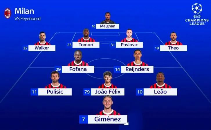 寄望主场翻盘,米兰必须进球,进攻问题就必须解决。球队个体能力不用怀疑,菲利克斯、莱奥、普利西奇都是经历过大场面的,即便是希门内斯也是球队本季在欧冠进球最多的球员。冬窗刚从费耶诺德挖来,代表荷兰球队打了5场欧冠,贡献了5球1助攻。到了米兰之后,火速首发,连续两场比赛破门,成为自1994/95赛季三分制以来第三位在意甲前两场比赛都取得进球米兰球员,前两位是舍甫琴科和普利西奇。