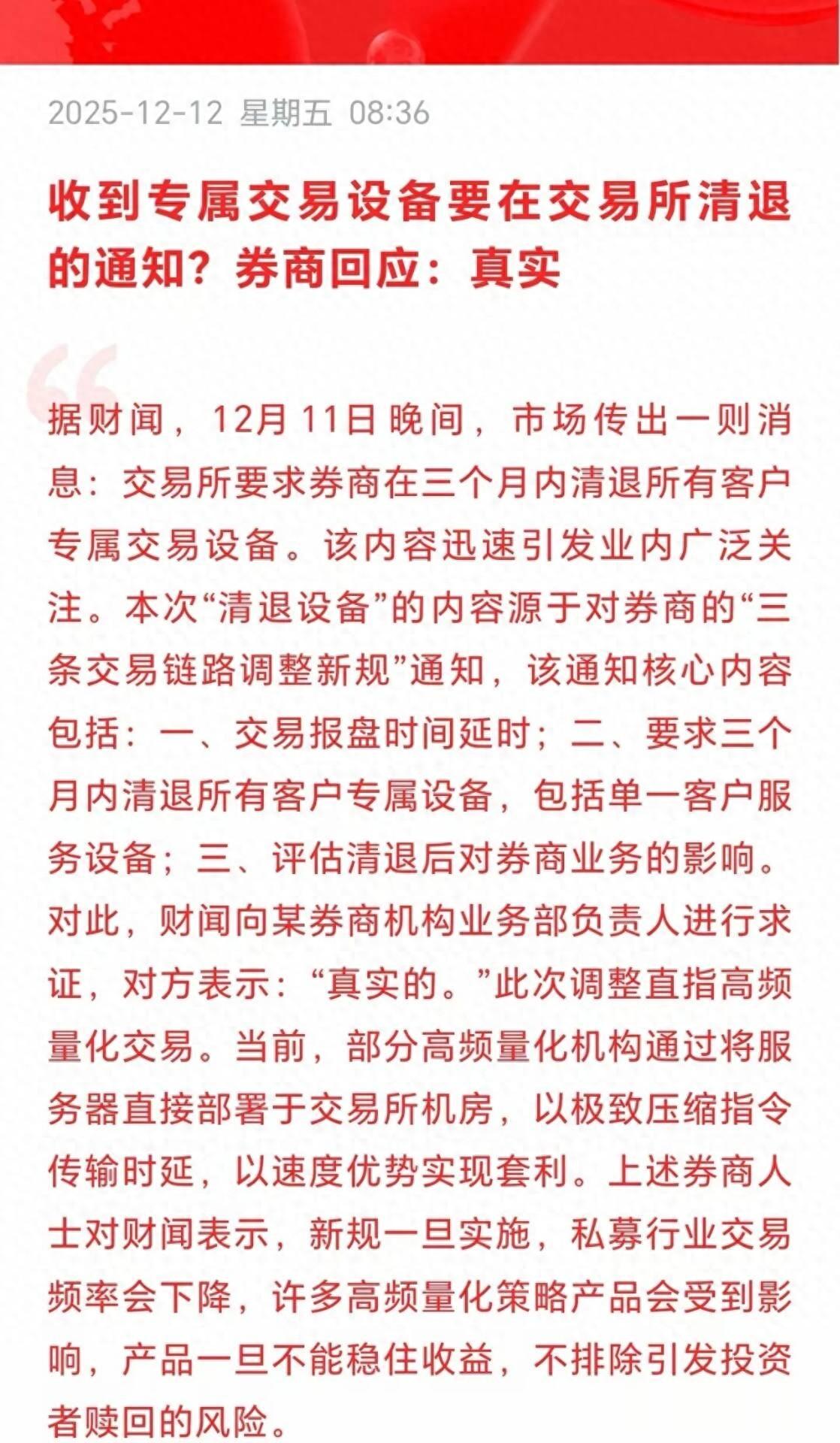 如今相关整改措施出台,要求量化公司将设备撤出交易所,官方说法是为其他交易者讨回那几微秒的公平。可明眼人都清楚,这不过是治标不治本的权宜之计。