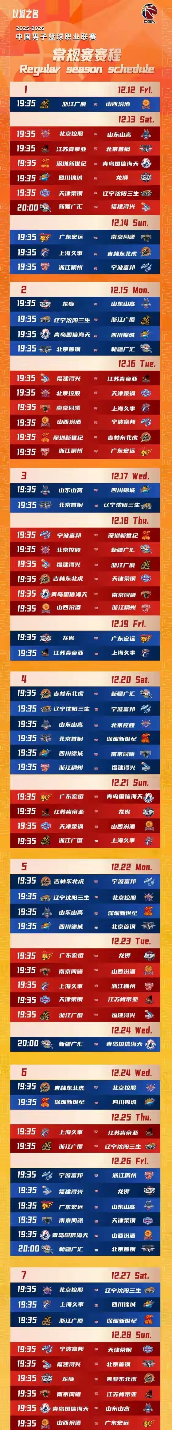 下面是CBA常规赛第一阶段的赛程,请大家收藏,以便届时观看。