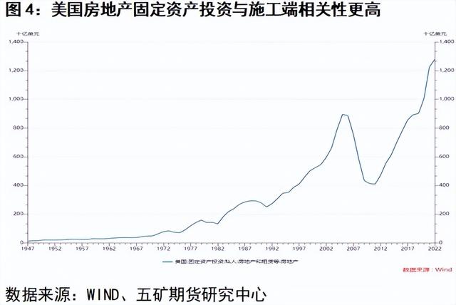 美国房地产行业固定资产投资的演变节奏与其新开工以及施工基本相当,可以看到在2018年后其固定投资便超过了2005年的高点。截止至2022年数据,较2005年的高点增长已超过50%。这与前文的结论是相互对应的:从美国的经验来看,即使城镇化率的增长进入瓶颈期,房地产泡沫的破裂并不代表这个行业不再存在复苏的机会。只是因为房地产行业的属性,导致其周期被相对拉长。