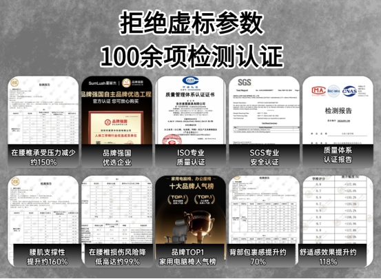 SumLush死磕“行业旗舰级人体工学椅”有多疯狂?对每一款新产品进行200多项极限测试标准,确保每个细节无懈可击。同时,邀请了1000+腰椎患者进行真实使用测试,实时发现潜在的安全隐患与问题并进行改进。因此,在品质控制和用户体验方面,夏草木人体工学椅无疑成为行业性能最强的王者。