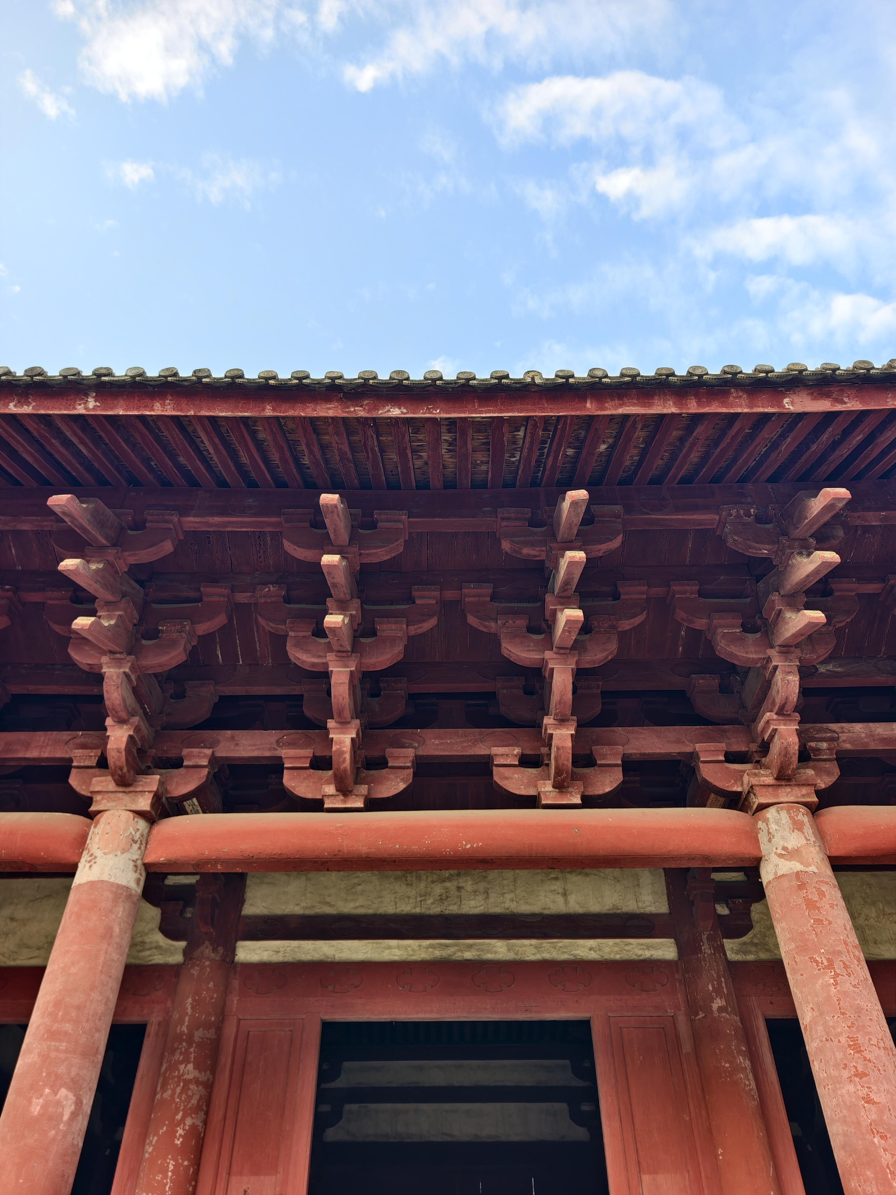 你想想看,当你站在大殿前,你的手机连着5G网络,刷着短视频,看着周围的玻璃幕墙写字楼里,西装革履的白领们在为KPI奔波。而在你面前的这座木房子里,赵匡胤时代的木头还在呼吸。这中间隔着一千零六十年。