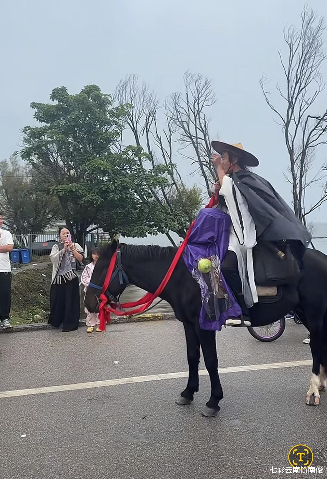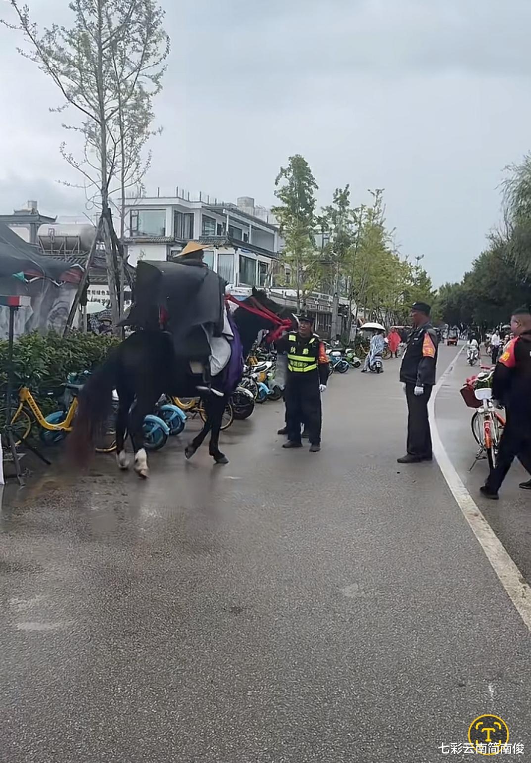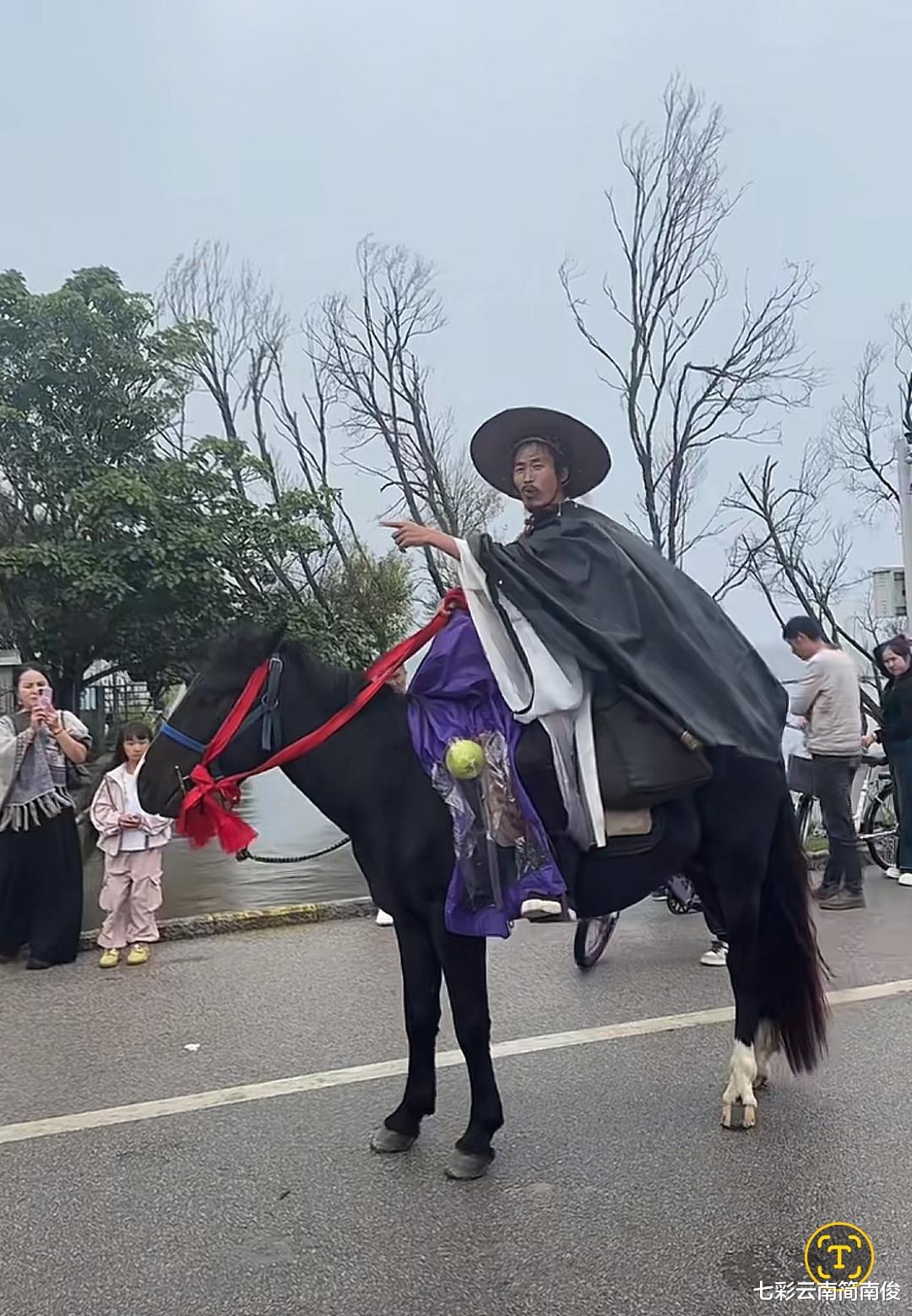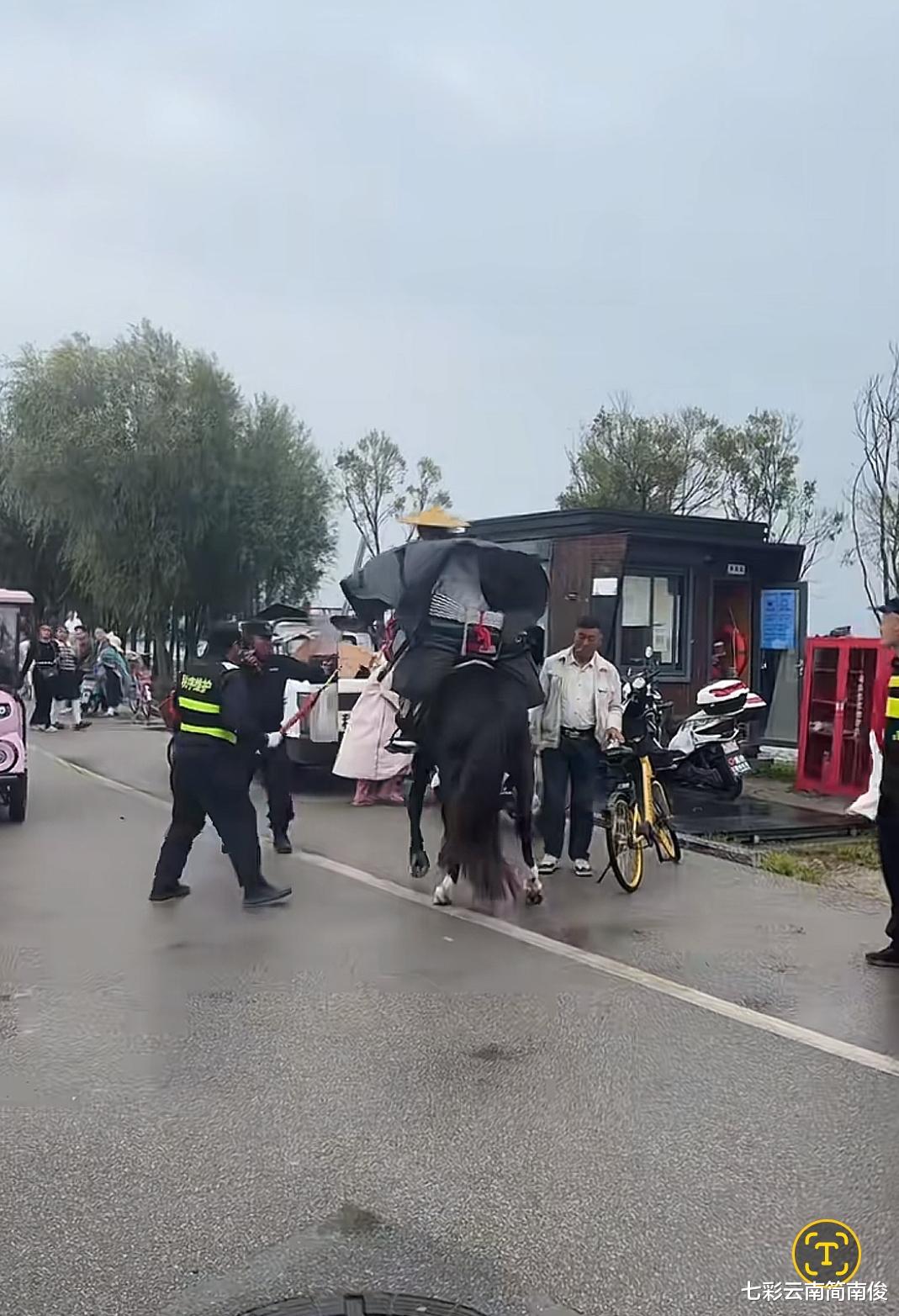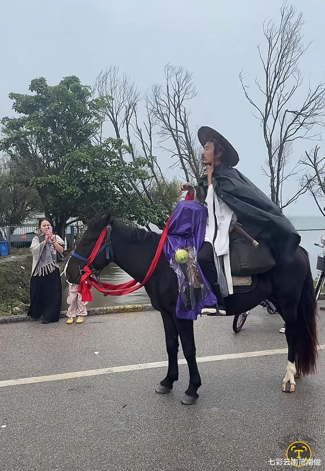 经观察获悉,10月7日,在云南省大理州洱海畔环海公路,一名中年男子骑马仗剑现身云南大理洱海之畔。据流传画面显示,该名中年男子留着长长的胡子,骑着高头大马,戴着斗笠,腰间挂着宝剑,宛如武林大侠一般。经了解,该名男子被云南大理洱海景区保护工作人员拦截,不允许骑马进入洱海景区。事件引起现场人员围观起哄,经过简短交流后,该名男子强行骑马进入景区,被现场工作人员拦截,有一名工作人员用手上的工具打马,于是该名男子下马与洱海工作人员理论。中年男子最终有没有进入景区?不得而知,一时难以知晓。消息传出后,引发网友关注。众多网友目睹此情此景,纷纷发表看法,仁者见仁,智者见智,可谓众说纷纭,难以定论。该名男子表示,骑马是绿色出行,并没有破坏环境,而景区工作人员不依不饶,就是不允许通行,导致该名男子进退两难。