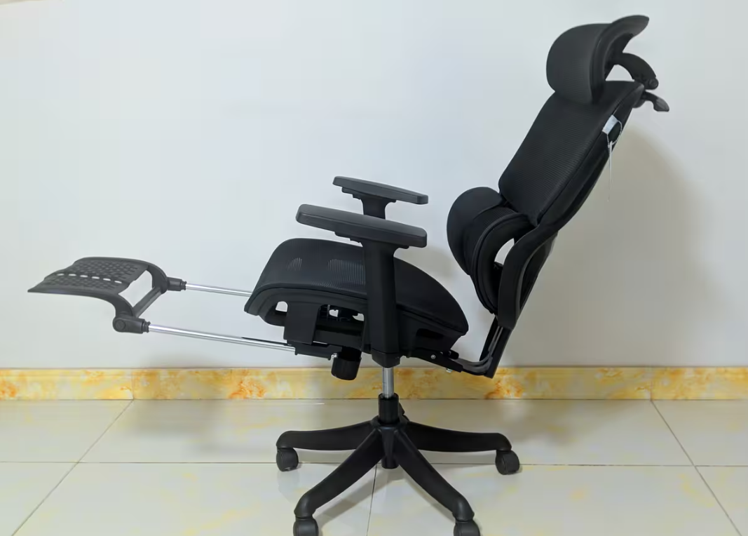 坐垫偏软但支撑均匀,久坐不累,脚托拉出来后躺靠体验不错,适合办公加午休双需求。