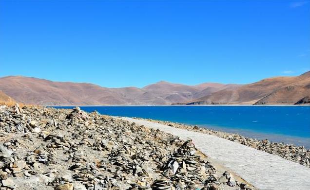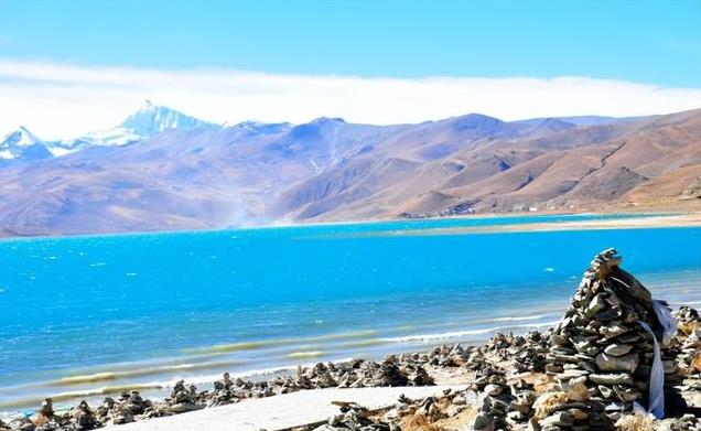 羊卓雍措与纳木措、玛旁雍措并称西藏三大圣湖。所到路口、湖边到处是藏民祈福的玛尼堆,十分震撼、壮观。