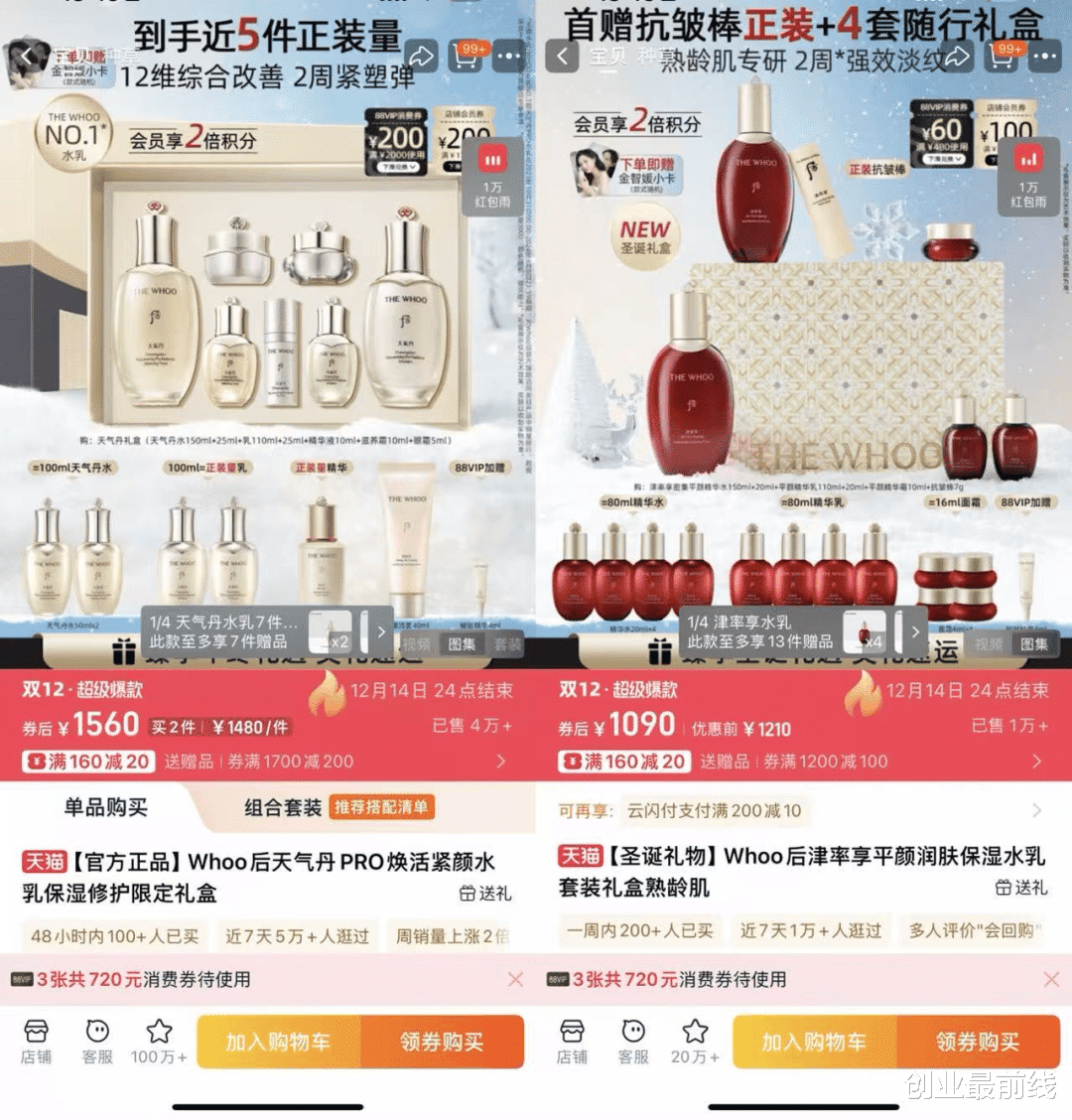 天气丹系列则更进一步,聚焦亚洲初老肌肤的淡纹与修护,最热销的“天气丹PRO焕活紧颜水乳保湿修护礼盒”在双12活动价为1560元/套,功效宣称直击进阶抗老人群痛点。