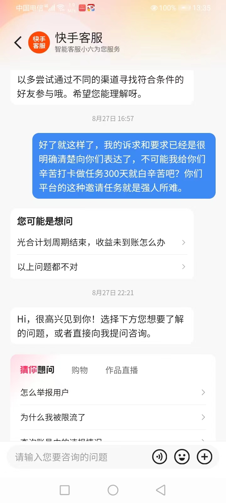 2025年8月27日,当3650元现金打卡进度走到300天、完成度82%时,他像往常一样做完看视频、刷广告等5项任务,却发现最后一项任务变成了邀请1名30天未登录快手的新用户。