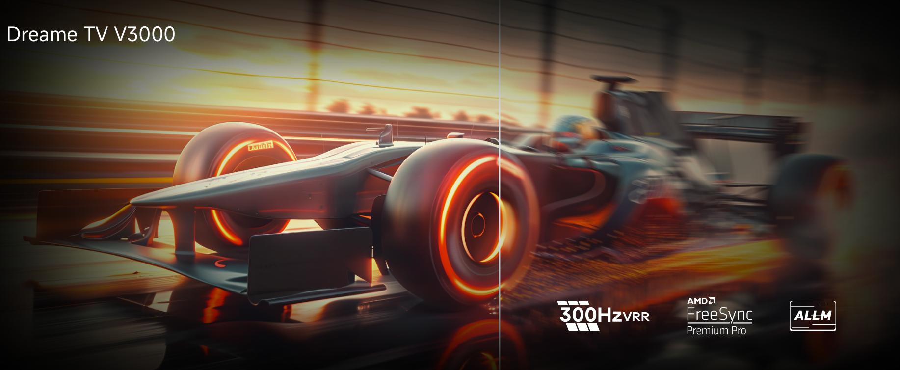 除了屏幕素质过硬,V3000系列还针对游戏玩家和体育爱好者做了优化。其配备的300Hz超高刷新率(电视领域罕见)能呈现更流畅的画面,快速移动的游戏角色、体育赛事中的激烈动作都无拖影,搭配低延迟表现,带来“跟手”的操控感。此外,追觅在显示技术的底层研发上投入颇多——从Mini LED灯珠封装工艺到量子点材料配方,从千级分区控光算法到AI场景识别引擎,均为行业最新技术。