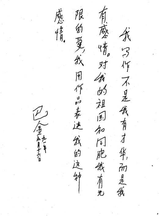 "我没有什么过人的本领,只有一颗赤诚的心,一腔满腔的热忱。"