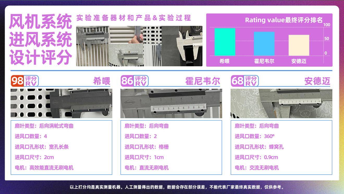 从电机、扇叶、风道和风口结构四方面进行评分,重点评估电机是否稳定耐久、气流导向是否顺畅、是否存在二次飘毛。