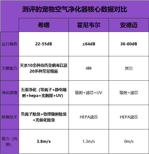 可市面上很多产品只是普通空气净化器贴了“宠物”标签,滤芯三天报警、风力弱、除味靠香薰掩盖。为了搞清楚哪些机型真的有效,我亲自选了三台呼声高、定位各不相同的机型——希喂、霍尼韦尔和安德迈进行了多维度实测,看看谁能真正拯救养宠家庭的空气。