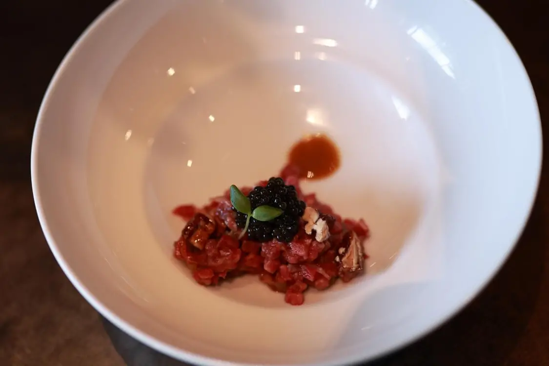 8月27日,“2024希尔顿主厨季”路演在深圳迎来收官,深圳康莱德酒店西餐厅主厨杨松将澳洲牛肉作为主要食材,以传统法餐呈现美味。杨松为这次希尔顿主厨季设计了6种菜品,其中4种都是澳洲牛肉菜式,澳洲和牛臀腰肉心塔塔、 澳洲和牛里脊薄片佐油封蛋黄、法式和牛牛霖清汤和澳洲和牛西冷。一般来说牛肉塔塔会选择牛里脊来制作,杨松这次特别选用了澳洲臀腰肉心(Rostbiff),咀嚼时会有颗粒感。