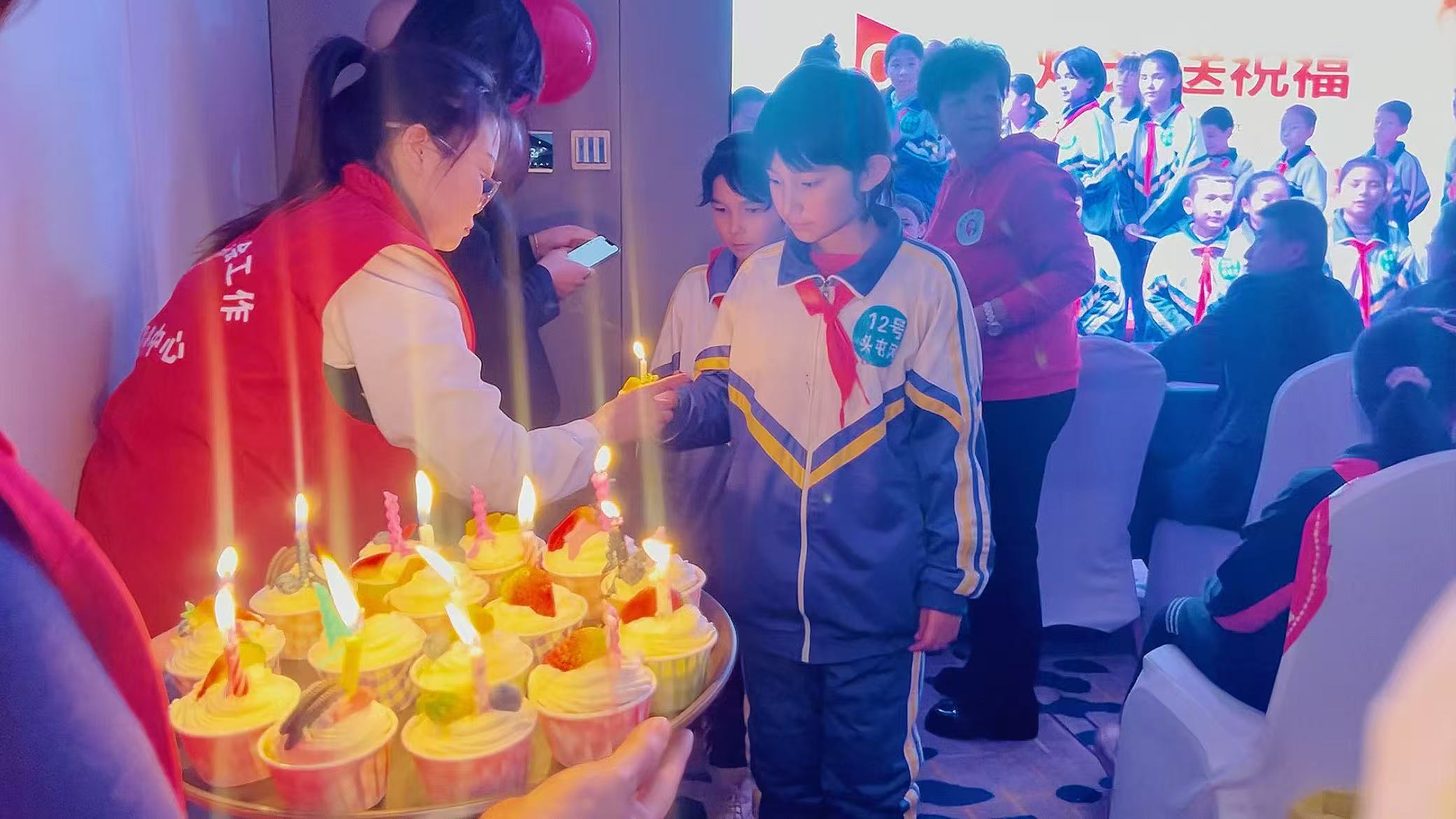 孩子们集体吟诵“爱的传递能量卡”,用纯真的声音诉说感恩;烛光传递祝福环节中,大家手捧点亮的纸杯蛋糕有序走动,眼神交汇间传递善意,更共同为祖国、爱心人士及困境儿童送上三重美好祝愿。最后,现场领导为爱心人士颁发“爱心大使”荣誉证书,为此次行动增添了郑重的仪式感。