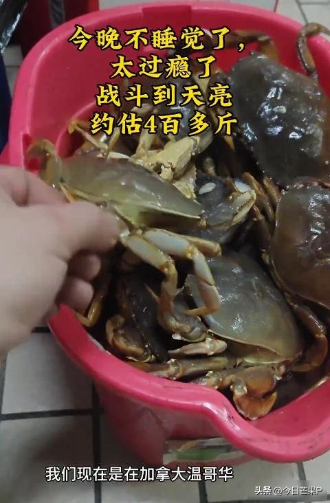 最近网上流传一段视频,拍的是温哥华港夜里一艘大船上发生的事,几个华人船员在甲板上忙着收珍宝蟹,一笼接一笼地捞上来,动作非常快,差不多十分钟就能收完一笼,他们自己说两小时抓了一百多只,总重量达到四百四十一磅,视频里可以看到不少螃蟹个头很小,明显没到合法尺寸的十六点五厘米,还有母蟹混在里面,更让人吃惊的是,好几个人手里都拎着好几只螃蟹,远远超过了每人最多只能拿四只的规定,最后这些螃蟹直接被拖进厨房蒸熟,配上青岛啤酒吃掉,字幕还写着“狠狠干、抓到天亮”,听起来根本没当回事。