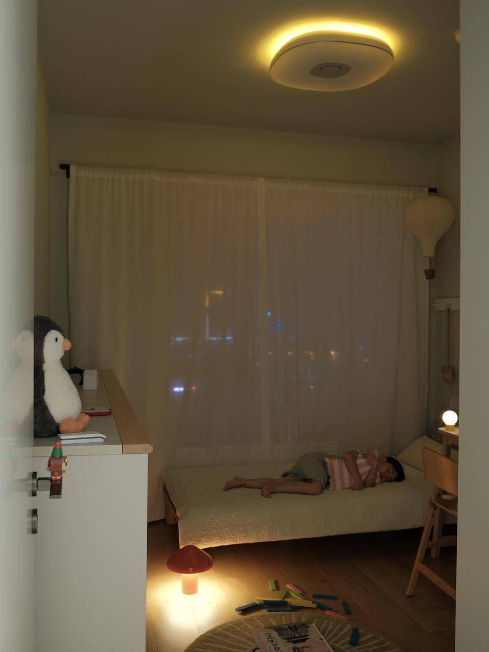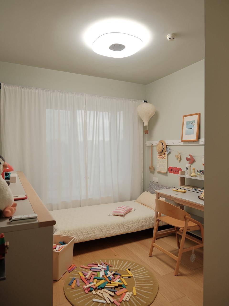 以明基Aora为例,其三层光源结构(直接光+间接光+独立夜灯)可同时满足明亮主照、氛围营造与夜间哺乳需求。在约25㎡的空间内,地面照度均匀达300lx以上,角落无暗区;显色指数Ra≥95,色彩还原真实;配合智能APP或语音控制,还能实现“渐亮开灯”“节律调光”等人性化功能。这种改造不仅成本可控,更将整个家居光环境提升至WELL V2健康建筑标准,为全家尤其是婴幼儿提供长期视觉健康保障。