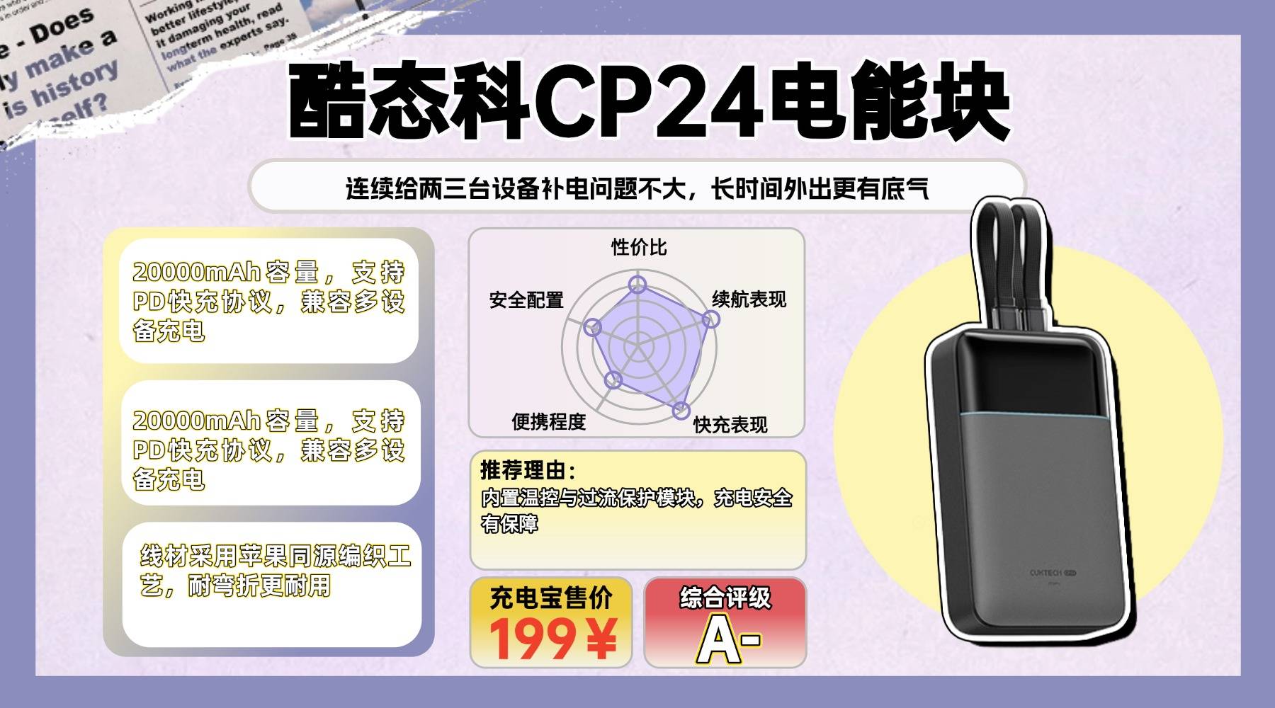 ●十大口碑比较好的充电宝品牌有哪些、第五款推荐:酷-态科CP24电能块