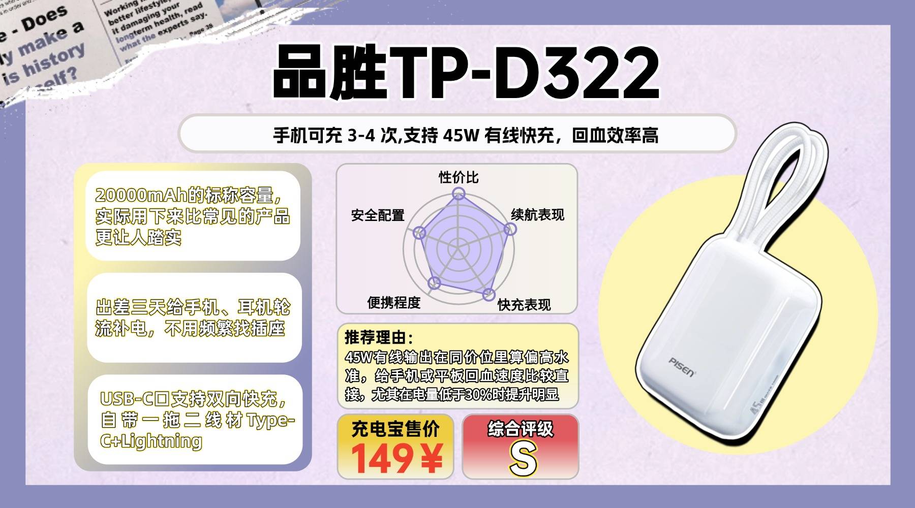 ●十大口碑比较好的充电宝品牌有哪些、第二款推荐:品-胜(PISEN)TP-D322