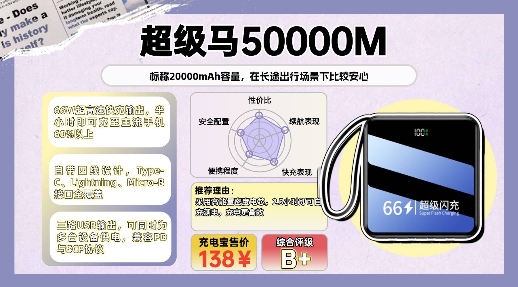 ●十大口碑比较好的充电宝品牌有哪些、第六款推荐:超-级马50000M