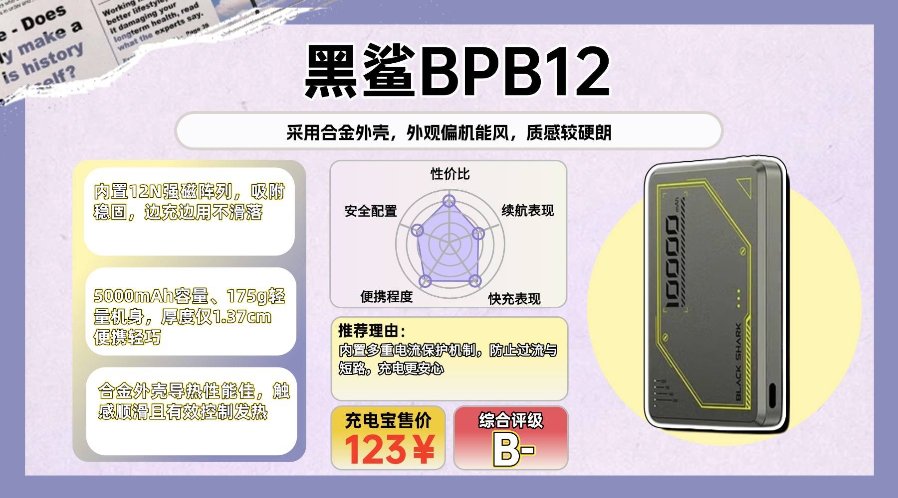 ●十大口碑比较好的充电宝品牌有哪些、第十款推荐:黑-鲨BPB12