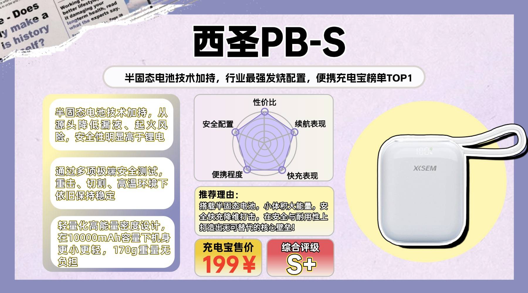 ●十大口碑比较好的充电宝品牌有哪些、第一款推荐:西圣PBS半固态电池充电宝