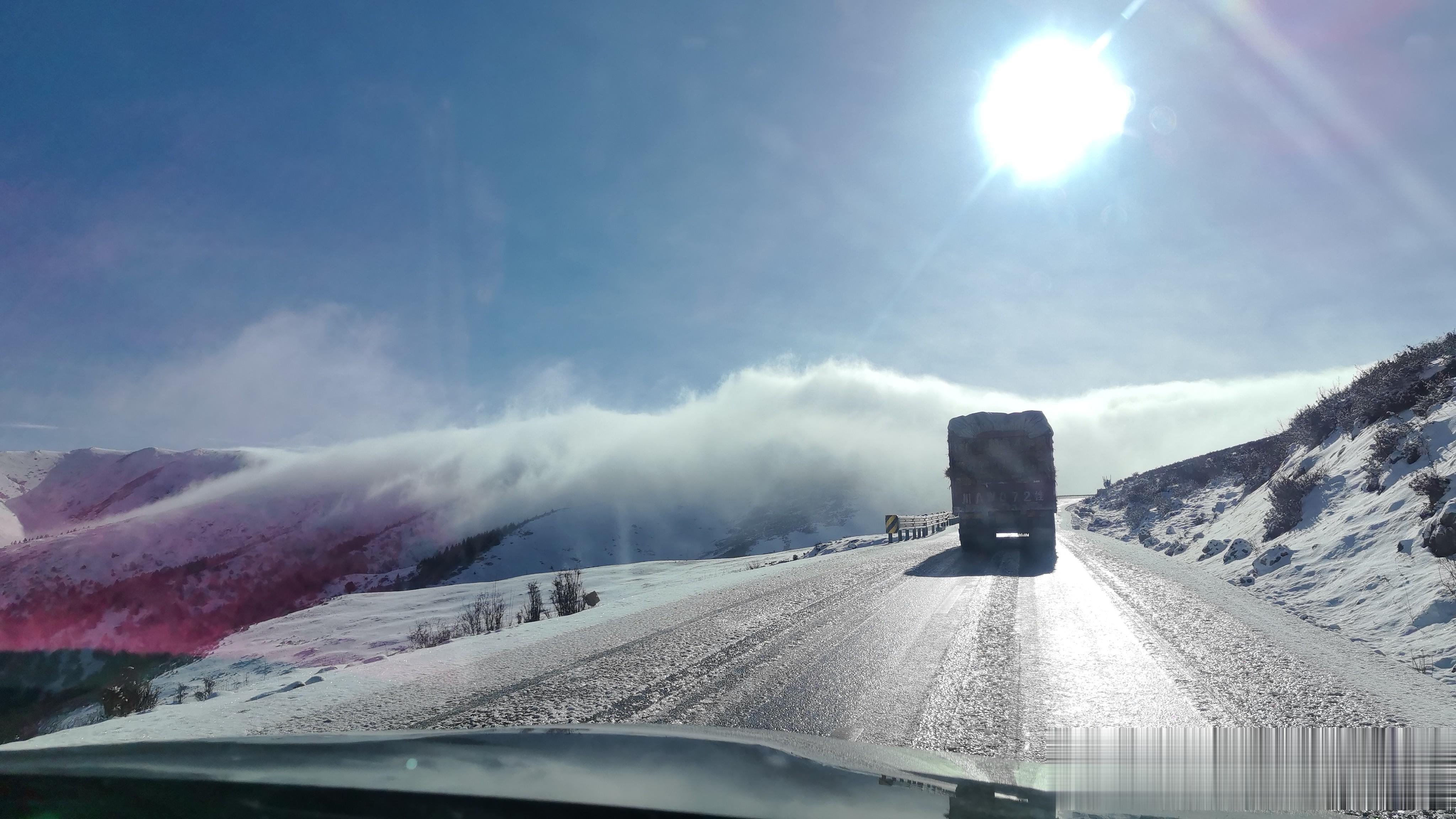 随着海拔的不断攀升,窗外的景致愈发奇幻。道路两旁的林木挂满了雾凇,晶莹剔透的冰凌在枝头凝结,仿佛大自然精心雕琢的艺术品。山间的雾气与飞雪交织,天地间白茫茫一片,能见度时高时低,为这段旅程增添了几分神秘色彩。当车辆翻越至海拔4429米的高处时,视野豁然开朗,连绵的雪山在云雾中若隐若现,宛如仙境。