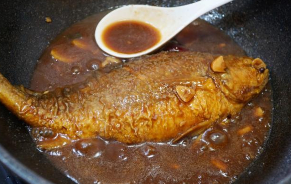 4. 烹制酱汁:在锅中加入豆瓣酱、姜末、蒜末,炒香后加入热水、生抽、老抽、食盐、鸡精、少许陈醋和胡椒粉,接着,将煎好的鱼放入锅中,盖上锅盖,让鱼肉在浓郁的汤汁中慢慢炖煮。炖煮时间约为6-7分钟,待鱼肉充分吸收汤汁的味道后,即可出锅。