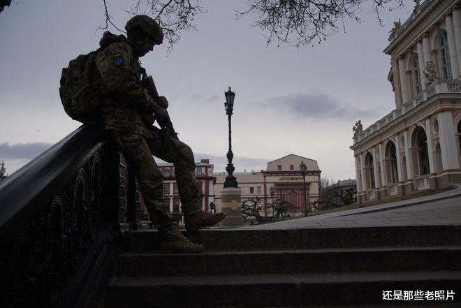 2022年3月,乌克兰敖德萨街头的乌军老兵,正在紧张戒备之中,时刻防备俄罗斯军队发动的袭击。