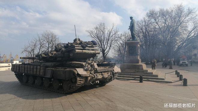 2022年3月,在乌克兰敖德萨市中心的波将金楼梯附近,可以看到一辆乌克兰的军用坦克。此时的敖德萨,处处充满了紧张的气氛。