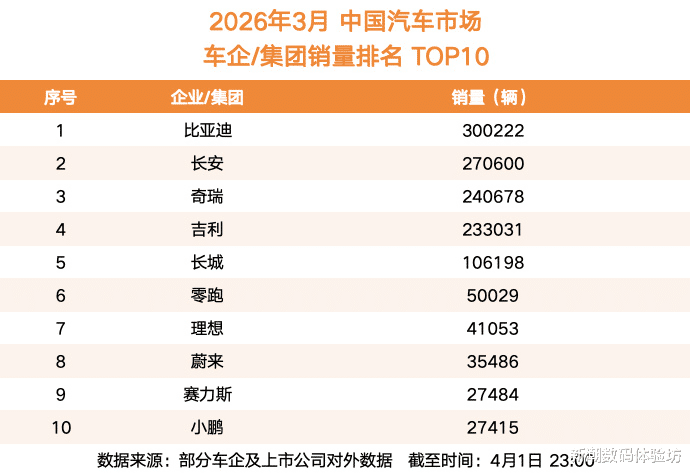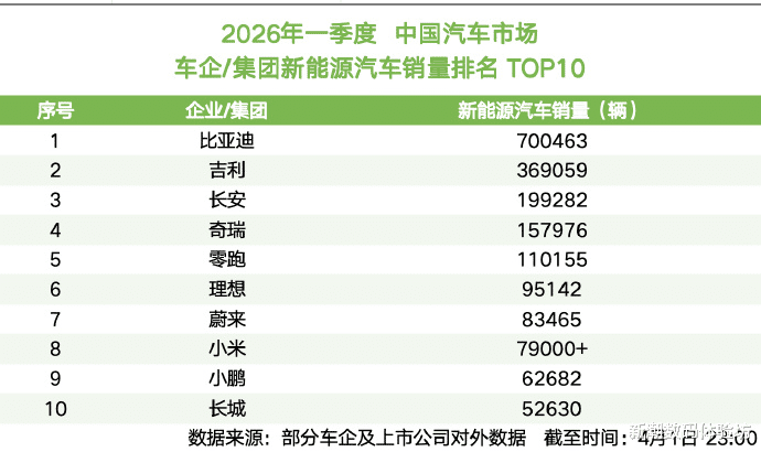 最近包括比亚迪、吉利、奇瑞、鸿蒙智行、长城、蔚来、小鹏、理想、零跑等各大车企都先后公布了各自的销量数据,比亚迪又毫无疑问的断层领先,3月卖了整整300,222辆车,拿下了中国车企的单月销量冠军。这还没完,今年头三个月,它的新能源车总共卖了700,463辆,又是毫无争议的一季度新能源销冠。这可是实打实的“双冠王”。卖得好是因为车够多,覆盖了各种需求。比如,宋家族一个月就卖了将近7万辆,元UP卖了快2.4万辆,都是市场上的热门。走硬派越野路线的方程豹,一个月卖了超过2.5万辆,销量比去年同期涨了2倍多。海外市场也特别猛,3月就出口了将近12万辆车,增长速度非常快。能持续领先,关键是技术跟得上。3月刚发布的第二代刀片电池和闪充技术,充电速度特别快,解决了大家最关心的充电问题。智能驾驶系统也越来越普及。所以,比亚迪这个“双冠王”不是偶然的。它用全面的产品线、扎实的技术和全球化的布局,真正为整个行业树立了新能源汽车新标杆。