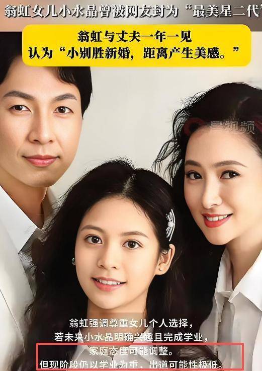 当下,翁虹与自己的丈夫、女儿存在差异,这是源于工作的因素,致使长时间处于三地分居的状况,而且又因学习的原因,在空间上出现分离两地的情形,不过翁虹却觉得如此反倒让夫妻之间的感情变得更为恩爱,相互之间愈发晓得珍惜 。