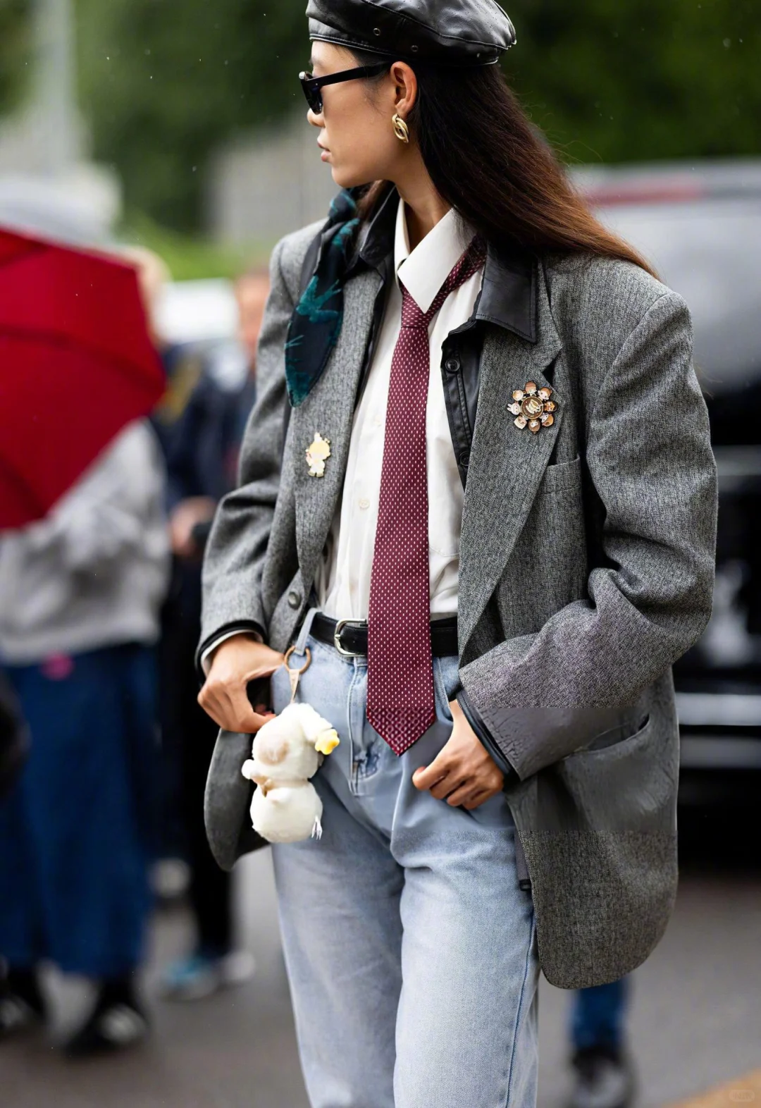 去年的高智风穿搭风靡一时,今年新高智风在保留 “智慧感” 底色的同时,打破了传统高智风的刻板框架。