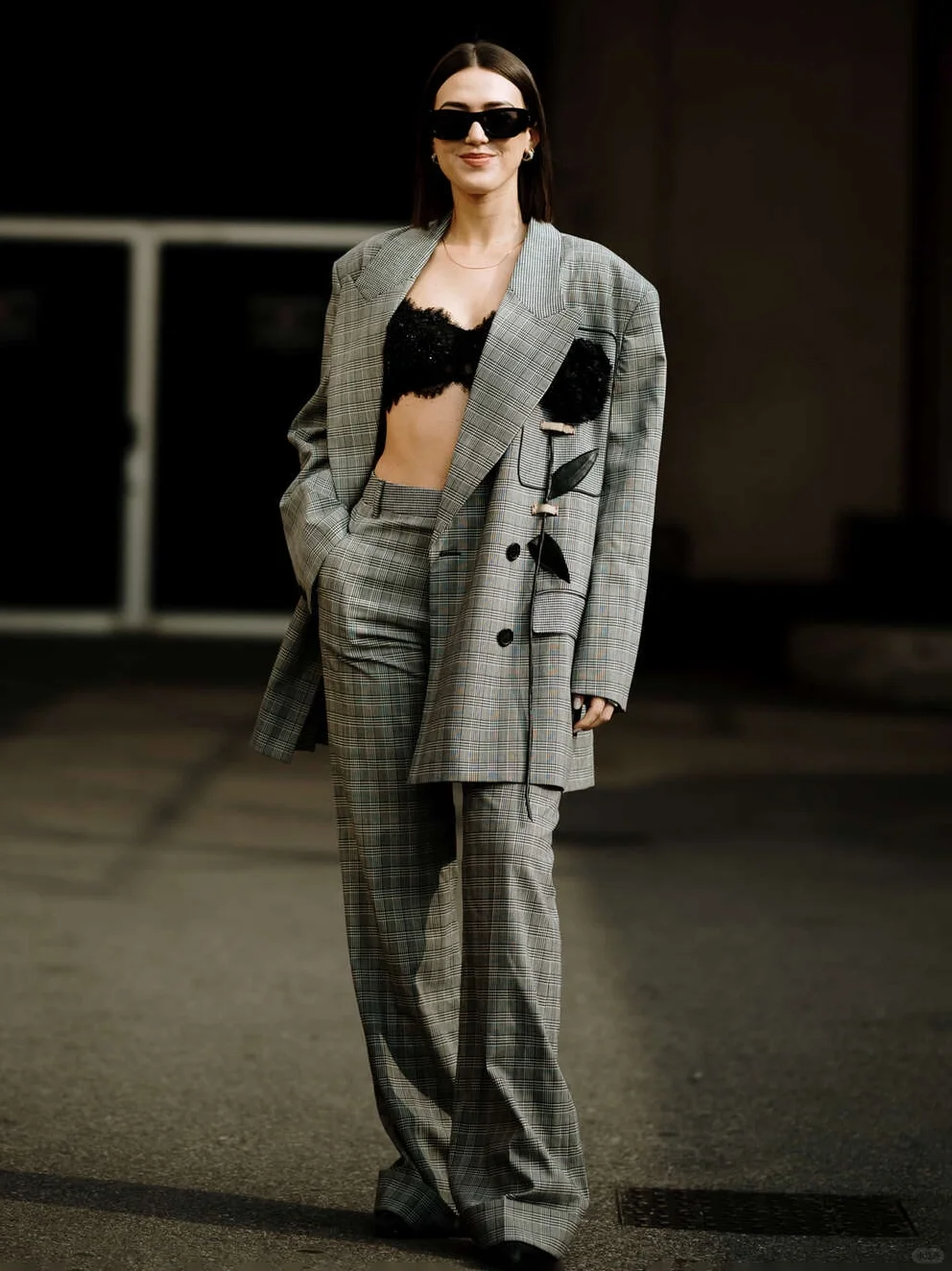 通过 “刚柔碰撞” 焕新,把今年热门的薄纱单品融入西装,恰好戳中了这种风格的精髓。